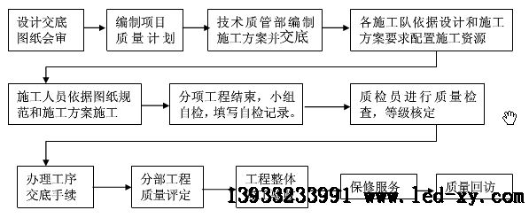 C、 坚持按图施工,结合本工程特点和和实际情况,严格执行施工验收规范和、操作规程,严格按照国家颁发的施工验收规范,质量检验评定标准以及本公司制订的质量体系文件来统一施工,明确规定各部门人员在施工中的职责;施工中对工程质量进行全过程控制,坚持预防为主的原则,对关键工序和特殊工序质量控制点进行复点控制,如发现质量问题要采取及时的、有效的措施,进行补救。对竣工交付的工程,实行定期回访制度,按照合同规定实行保修。